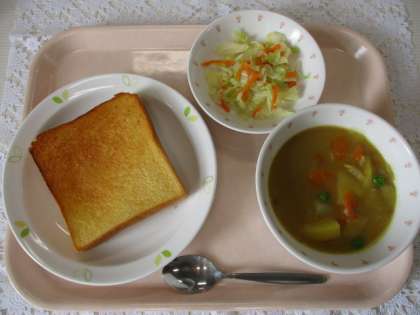 メープルトースト 牛乳 カレーシチュー キャベツサラダ