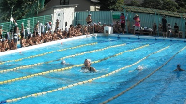 プール日和の天気となりました。今年度最後のプールでの授業は、5・6年生による水泳記録会です。6年生にとっては、小学校のプールとのお別れの日です。1年生のときは、広く深く大きく見えたプールも今では小さく感じているかも知れません。自己最高記録を目指し泳ぎ、リレーでの学年や学級の看板を背負って競う姿は、夏の暑さを上回る熱気がいっぱいでした。