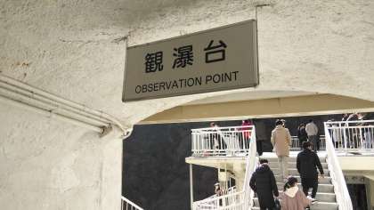 エレベーターで、なんと一気に100メートル下り、そこに現れたのは大きな大きな華厳の滝!