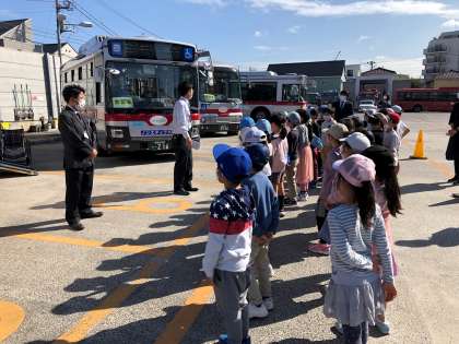 クラスごとに時間をずらし、バスの中や営業所の中を案内して頂きました。