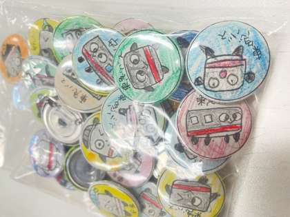 後日、安全運転のおまもりになる缶バッジをつくって営業所の方々にプレゼントしました。
