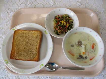 セサミトースト 牛乳 白菜のクリーム煮 大根とひじきのサラダ