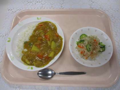 米:山形県 じゃがいも:北海道 玉ねぎ:北海道 にんじん:千葉県 大根:千葉県 きゅうり:宮崎県 セロリー:愛知県 にんにく:青森県 しょうが:高知県 りんご:青森県 ちりめんじゃこ:タイ 豚肉:千葉県