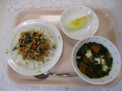 みそだれビビンバ 牛乳 わかめスープ くだもの(りんご)