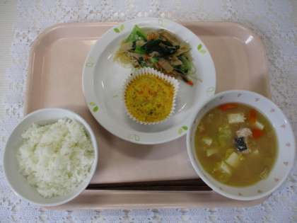 ごはん 牛乳 卵焼き 石狩汁 小松菜サラダ