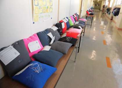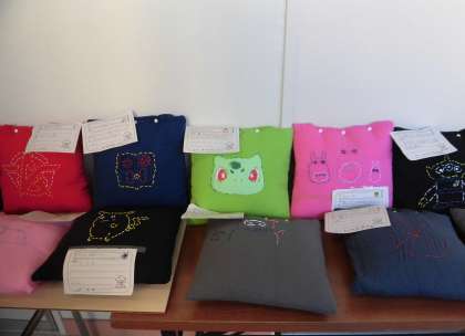6年生は家庭科の「思いを形にして生活を豊かに」という単元でクッションカバーづくりをしました。