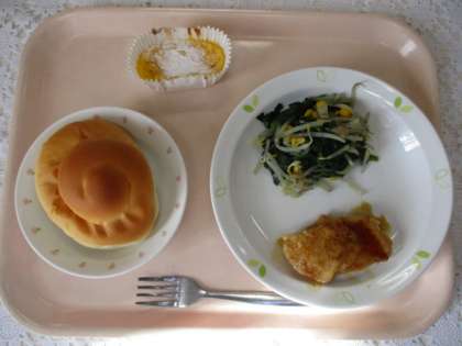 ミルクパン 牛乳 鶏肉のマーマレードソース 野菜のソテー かぼちゃのチーズケーキ