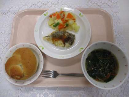 セサミパン 牛乳 魚のバーベキューソース ジャーマンポテト ポパイスープ