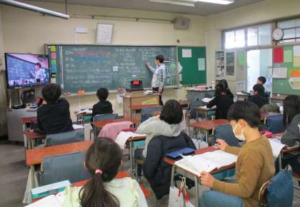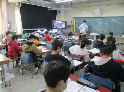 それぞれのクラスで、対面で授業を受ける児童、自宅で授業を受ける児童がいる中、工夫して授業を行っています。