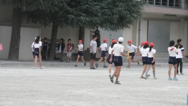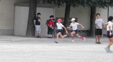 6年の選抜選手によるリレー練習の様子です。練習で走力が飛躍的に伸びるということはありません。タイムに最も影響するのはバトンパスです。スピードを落とさずにパスできればタイムは格段に縮まります。走者同士の阿吽の呼吸を練習を通して磨きをかけていきます。