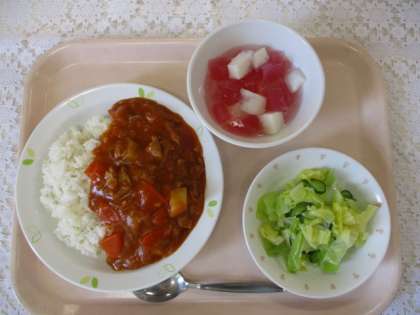 ハッシュドポークライス 牛乳 キャベツときゅうりのピクルス 紅白ゼリー
