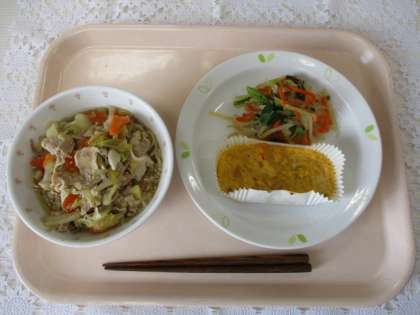 たんめん 牛乳 切干し大根の卵焼き 糸寒天と野菜のあえ物