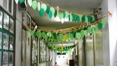 職員室前の廊下に垂れ下がったたくさんのほめほめの葉へのご協力ありがとうございました。PTA研修委員会のおかげでたくさんの温かい言葉でいっぱいになりました。これを機会に、ほめほめの輪を広げていきましょう。