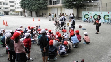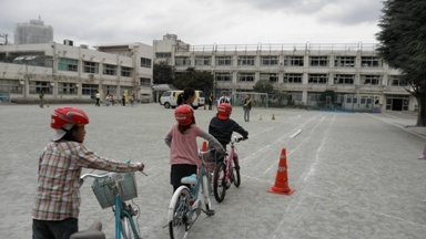 3年生が交通安全教室で安全な自転車の運転の仕方やきまりを玉川警察署の皆さんのご協力を得て実施しました。自転車は被害者にも加害者にもなります。実技練習や標識の意味など、真剣に取り組みました。