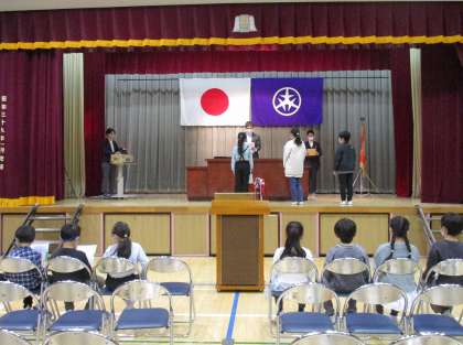 児童代表の1年生は、1年間を振り返り、堂々と発表していました。