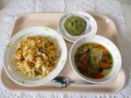 中華おこわ 牛乳 ワンタンスープ 東京狭山茶マフィン