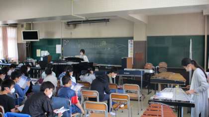 一回演奏してみて楽器の音が大きいなと思ったら歌声を大きくしたり、楽器の人数を減らしたり、みんなで話し合い、試行錯誤しながら練習に励んでいました。