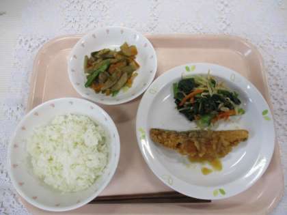 ごはん 牛乳 魚のおろし炊き くきわかめのきんぴら 野菜のおかかかけ
