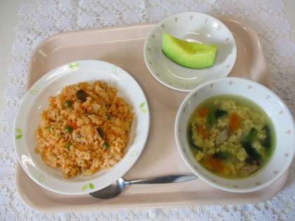 チキンライス 牛乳 イタリアンスープ くだもの(メロン)