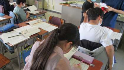 今日は、キーワードになっている「時計の時間」と「心の時間」とは何か確認し、文章構成を確かめました。友達と協力したり、一人でやってみて、悩んだり困ったことがあれば友達に聞いてみたり・・・子供たち自身で学習形態を工夫しながら取り組んでいます。