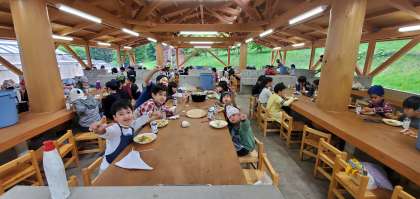 飯盒炊飯の様子です。協力してカレーライスを作りました!おいしかったです。