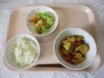 米:山形県 じゃがいも:鹿児島県 大根:青森県 にんじん:茨城県 キャベツ:茨城県 きゅうり:茨城県 しょうが:高知県 さやいんげん:東京都 豚肉:千葉県