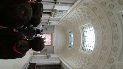議事堂内を歩きながら、中庭にある池の秘密や、ステンドガラスのことをなどを教えて頂きました。