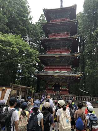 「見ざる言わざる聞かざる」の8面の彫刻も興味津々で聞いていました。