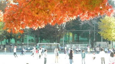 先週末は、雨の影響もあり寒い日が続きました。今日は、暖かな陽射しの影響で校庭は、気持ちのよい場所となりました。色づいた樹木といっしょに子どもたちの躍動する休み時間の様子を見てください。