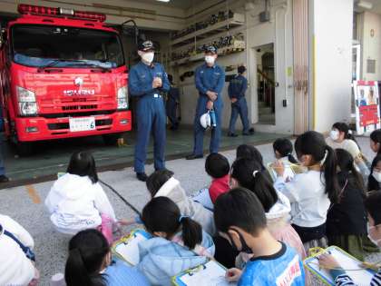 今日は、3年生が玉川消防署用賀出張所へ社会科見学に伺いました。