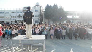 昨日に続き伝統文化体験の日第2部として、毎年恒例の大もちつき大会を迎えました。地域の皆さん、おやじの会、親瀬会、PTAの皆さんの熱い協力がないと成り立たない行事です。最初に全校朝会でお世話になる地域の大塚信美さんや学校運営委員会委員長の平澤さんからもちつきのことや瀬田小の子どもたちに期待したいることなどについてお言葉をいただきました。