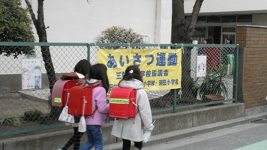 今週はあいさつ週間です。代表委員が中学校でもあいさつ運動をしています。
