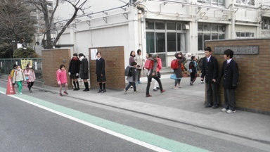 今週は毎日中学生があいさつ運動で瀬田小の正門に訪れます。今日は、昨年度の卒業生たちが来てくれました。