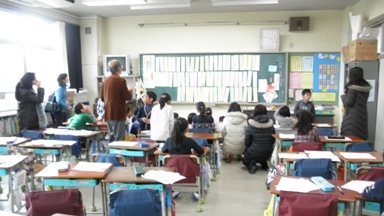 俳句の先生をお招きして、2年生が俳句の学習をしました。最後にみんなで作った作品の品評会をしました。リズムある17文字にするため、最初は考えこんでいましたが、しだいに考えを広げ子どもらしい感覚で書きあげていました。