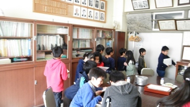 今3年生は、社会科で生活の移り変わりについて学習しています。学校内の古いもの探しでは、校長室にも来て学んでいます。