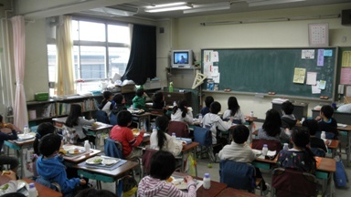 委員会活動は、学校のため、みんなのための活動です。給食の時間には、お昼の放送の準備を放送委員がします。そして、今日の献立や本日の食材についてを給食委員がお昼の放送で紹介します。また、美化委員会が今週の校内ピカピカポイントを言葉や映像で紹介していました。5年生以上で組織します。