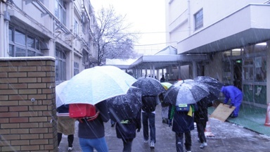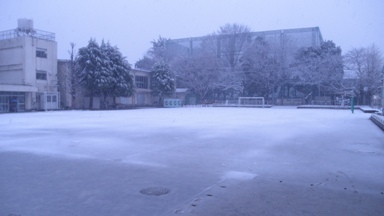 朝からの雪で、学校はすっかりと雪景色となりました。その後の振り方はどか雪の典型です。ずい分と積もりました。また、しばらく校庭が使えない日が続きそうです。