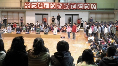 卒業する6年生へのメッセージや合唱、合奏を1年生から順に披露します。どの学年も真剣そのものです。その一生懸命は出しものは6年生への感謝の気持ちで一杯でした。