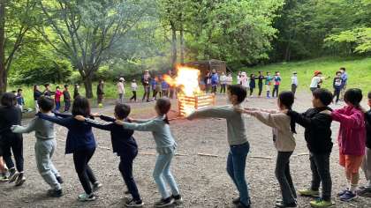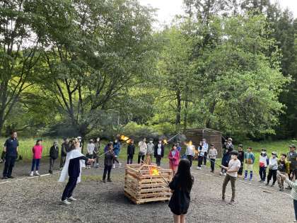 みんなで大きな日を囲み、心を一つに歌やゲームを楽しみました。
