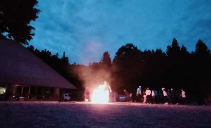 歌を歌ってゲームをし、日を囲って素敵な夜を過ごしています。