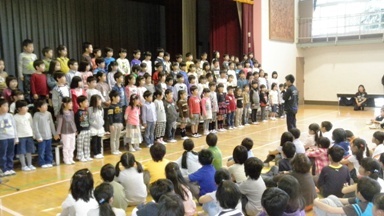 全校児童で1年生を迎える会をしました。準備は、代表委員会がします。初めて瀬田小の2年生から6年生とご対面をした1年生。お礼の歌やあいさつは2年生のお兄さんやお姉さんゆずりの元気のよさでした。今日から休み時間や朝会・集会に1年生は登場します。
