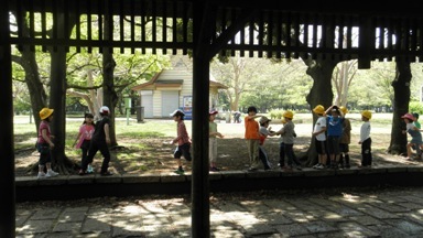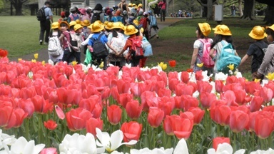 昨日までの空と違って、とてもよい天気になりました。気温もぐんぐん上がり、初夏を思わせる天気です。1年生が、「まるで夏のようだけど、桜が咲いている。」と感想を述べた言葉が、言い得て妙です。今の様子を見事に表現しています。2年生にとっては、お兄さん、お姉さんとしての役割を果たす遠足、1年生にとっては初めての校外学習であり、お弁当やおやつを食べることができる日とあって実に楽しそうでした。