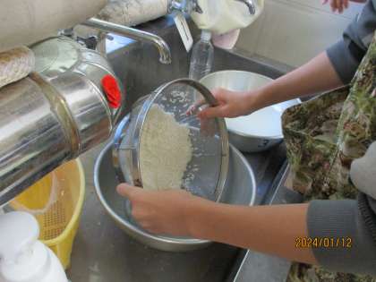 明日のもちつきに備えて、6年生全員でもち米をとぎました。「水が冷たい!」と言いながらも、大切なもち米を丁寧にといでいました。明日のもちつきが楽しみです!