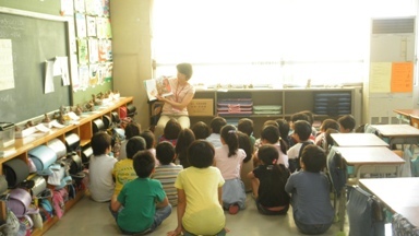 2年生の教室で保護者のボランティアの方による読み聞かせです。2年生ともなると、聞く耳がより一層育ってきました。