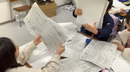 算数「1000より大きい数」の学習で、紙が何枚あるか数えました。