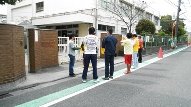 学校運営委員の皆さんやおやじの会の皆さんには、土曜日授業のときになると通学路のポイントで、子どもたちの登校の安全を見守っていただいています。ドライバーへの注意をうながすことにもつながっています。瀬田小の心強い応援団です。
