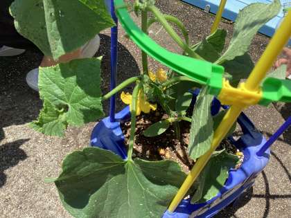 育てている夏野菜がだんだん花を咲かせてきています。毎日水やり頑張っています。