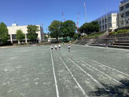 今日は天気にめぐまれ、50m走のタイムを測りました。