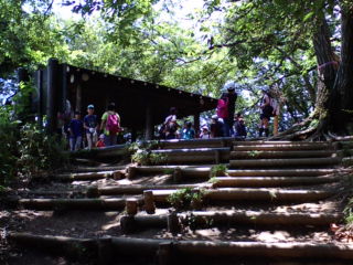高尾山の自然を満喫しながら登山を楽しんでいます。木漏れ日が心地よいです。