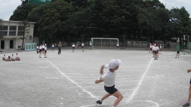 今週は体力テスト週間です。厳しい暑さになる前に実施しています。今日は、全校児童がソフトボール投げに挑戦しました。子どもたちの世界からベースボール型遊びが減った影響で3〜5歳児の投球をする小学生が増えたといわれています。全身を上手に使った投球ができるようにすることが目標です。